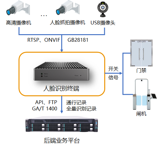 采用人臉識(shí)別和訪客機(jī)的方式,通過(guò)門(mén)口攝像機(jī)采集的人臉信息,跟系統(tǒng)中的人臉庫(kù)做比對(duì),判斷來(lái)訪者是否有進(jìn)出權(quán)限,并結(jié)合傳統(tǒng)的門(mén)禁識(shí)別方式,控制門(mén)鎖的開(kāi)關(guān),從而方便人員通行,提高服務(wù)質(zhì)量。業(yè)務(wù)需要的情況下,可以在人臉識(shí)別的同時(shí),記錄考勤信息,生成考勤報(bào)表。