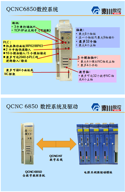 全數(shù)字?jǐn)?shù)控系統(tǒng)及伺服驅(qū)動(dòng)系統(tǒng)簡(jiǎn)化了連線(xiàn),減少插頭數(shù)量,提高整個(gè)系統(tǒng)的可靠性。秦川數(shù)控QCNC6850數(shù)控系統(tǒng)的CNC和QDLU伺服驅(qū)動(dòng)的緊湊型尺寸使它們更容易安裝在電氣柜中。