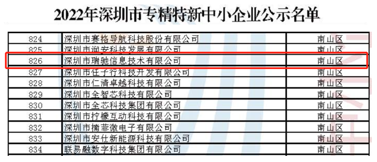 喜報(bào) | 瑞馳獲評(píng) 深圳市2022年度“專(zhuān)精特新”中小企業(yè)