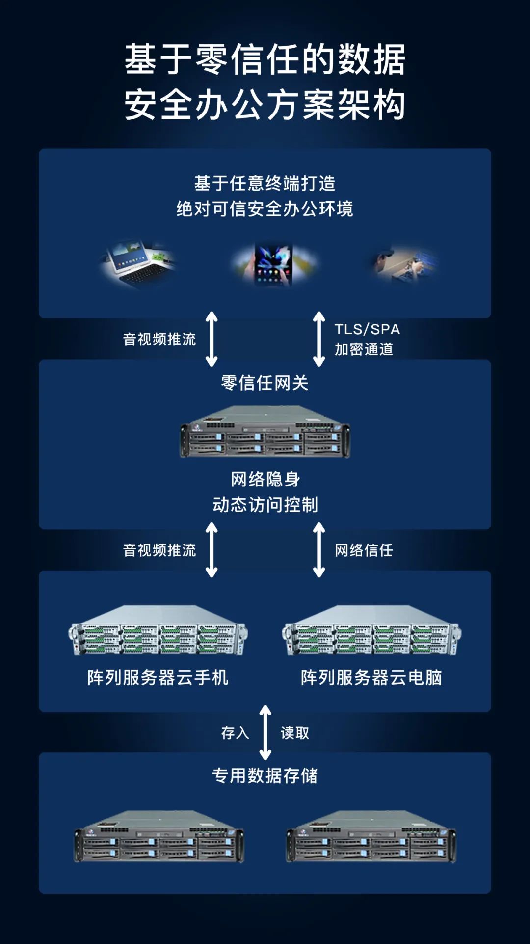 瑞馳與合作伙伴面向黨政央企、公檢法司等聯(lián)合推出基于零信任的云手機安全辦公方案,讓任意終端絕對安全接入內外網辦公成為可能。