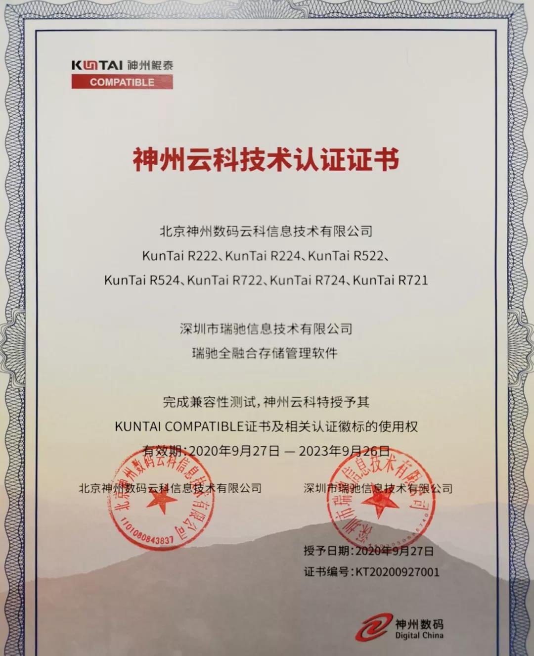 瑞馳與神州云科完成產(chǎn)品兼容互認證