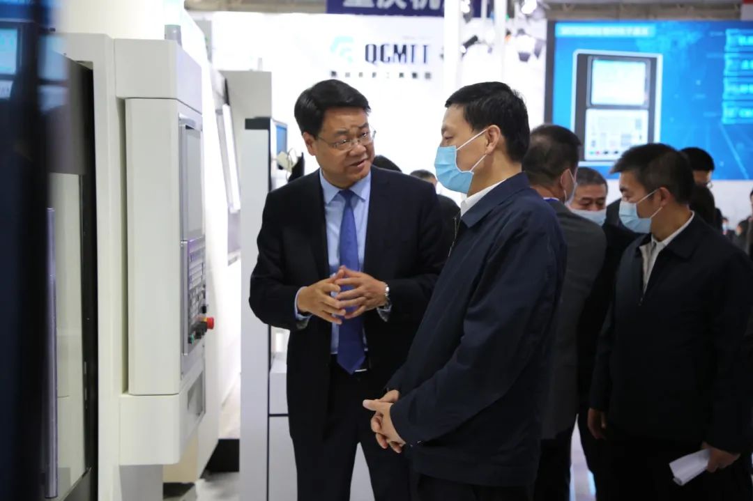4月14日,CIMT2021開幕第3天,國家工信部部長肖亞慶、副部長辛國斌及有關(guān)領(lǐng)導(dǎo)蒞臨秦川集團(tuán)展臺(tái),受集團(tuán)黨委書記、董事長嚴(yán)鑒鉑委托,集團(tuán)黨委副書記、總裁李強(qiáng)陪同并匯報(bào)參展情況。