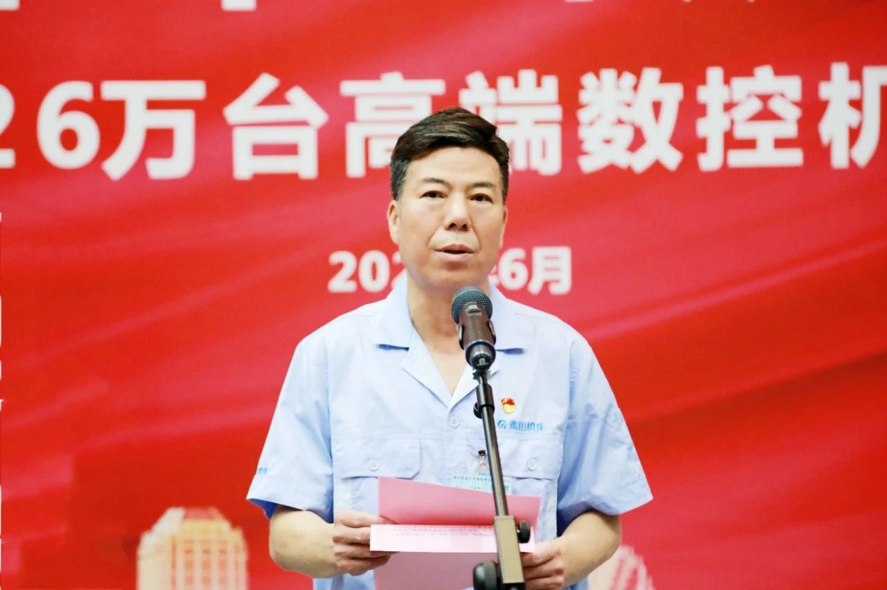 嚴(yán)鑒鉑代表集團(tuán)對第26萬臺高端數(shù)控機(jī)床順利下線表示熱烈祝賀!向日夜奮戰(zhàn)在生產(chǎn)一線的集團(tuán)全體員工致以崇高的敬意!