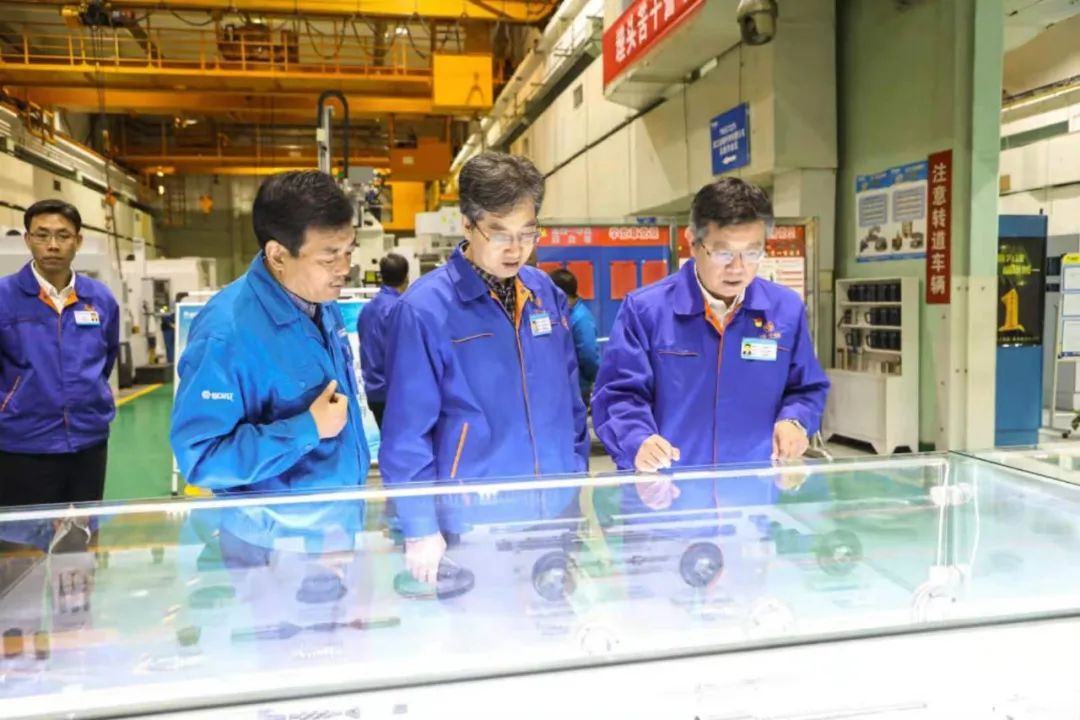 法士特領(lǐng)導(dǎo)干部先后參觀了秦川機(jī)床本部機(jī)器人數(shù)字化車間、總裝一車間和總裝二車間。