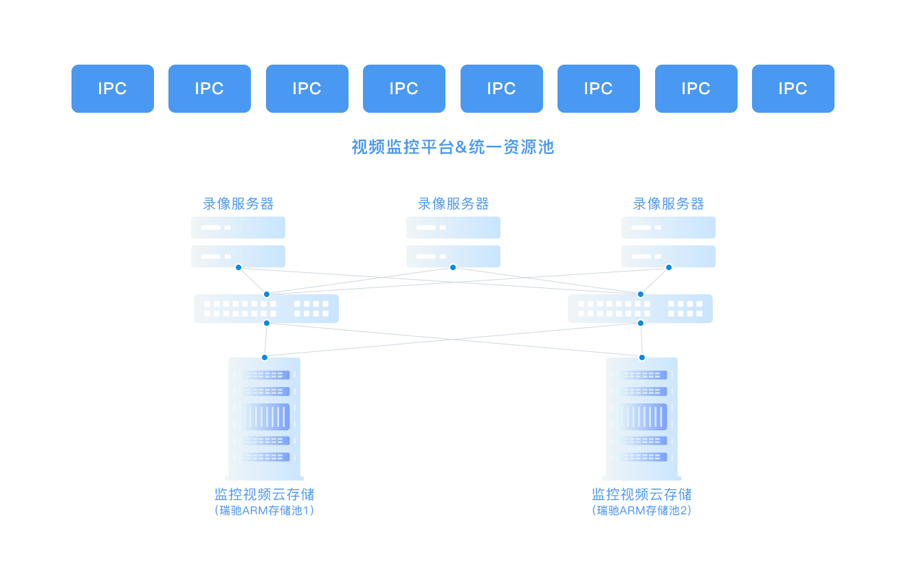瑞馳提供業(yè)界創(chuàng)新的微集群視頻存儲解決方案,項(xiàng)目通過部署多臺Nxcells高密度低功耗分布式存儲,與X86機(jī)頭服務(wù)器結(jié)合,組成“冷+熱”存儲池?!袄涑亍敝忻?個(gè)NxCell存儲刀片作為一個(gè)“微集群”。視頻寫入冷池時(shí),僅部分“微集群”是活躍的,剩下的不活躍的微集群則處于硬盤休眠狀態(tài),這樣大幅節(jié)省功耗并提高硬盤壽命。一個(gè)微集群寫滿,即進(jìn)入休眠狀態(tài),下一個(gè)微集群被喚醒…… 此方案既滿足視頻云大容量存儲,又保障前端數(shù)千上萬路攝像頭的正常寫入。高密度低功耗Nxcells存儲比X86服務(wù)器降低50%的運(yùn)營電力消耗,為企業(yè)節(jié)約機(jī)柜租賃設(shè)備維護(hù)費(fèi)用可達(dá)40%。